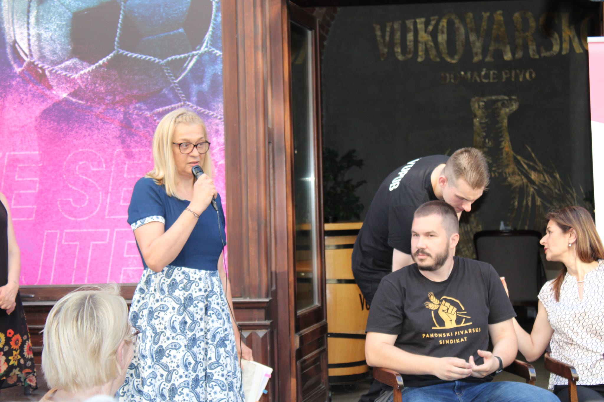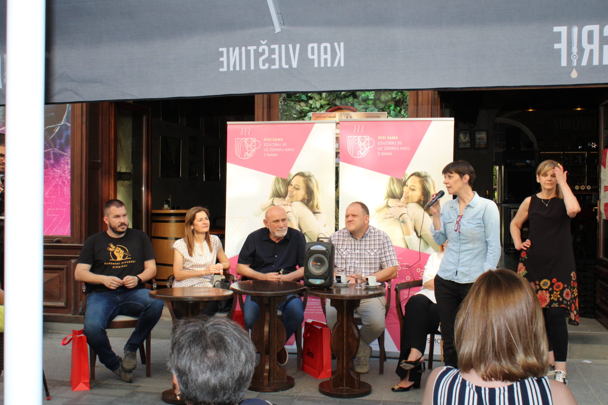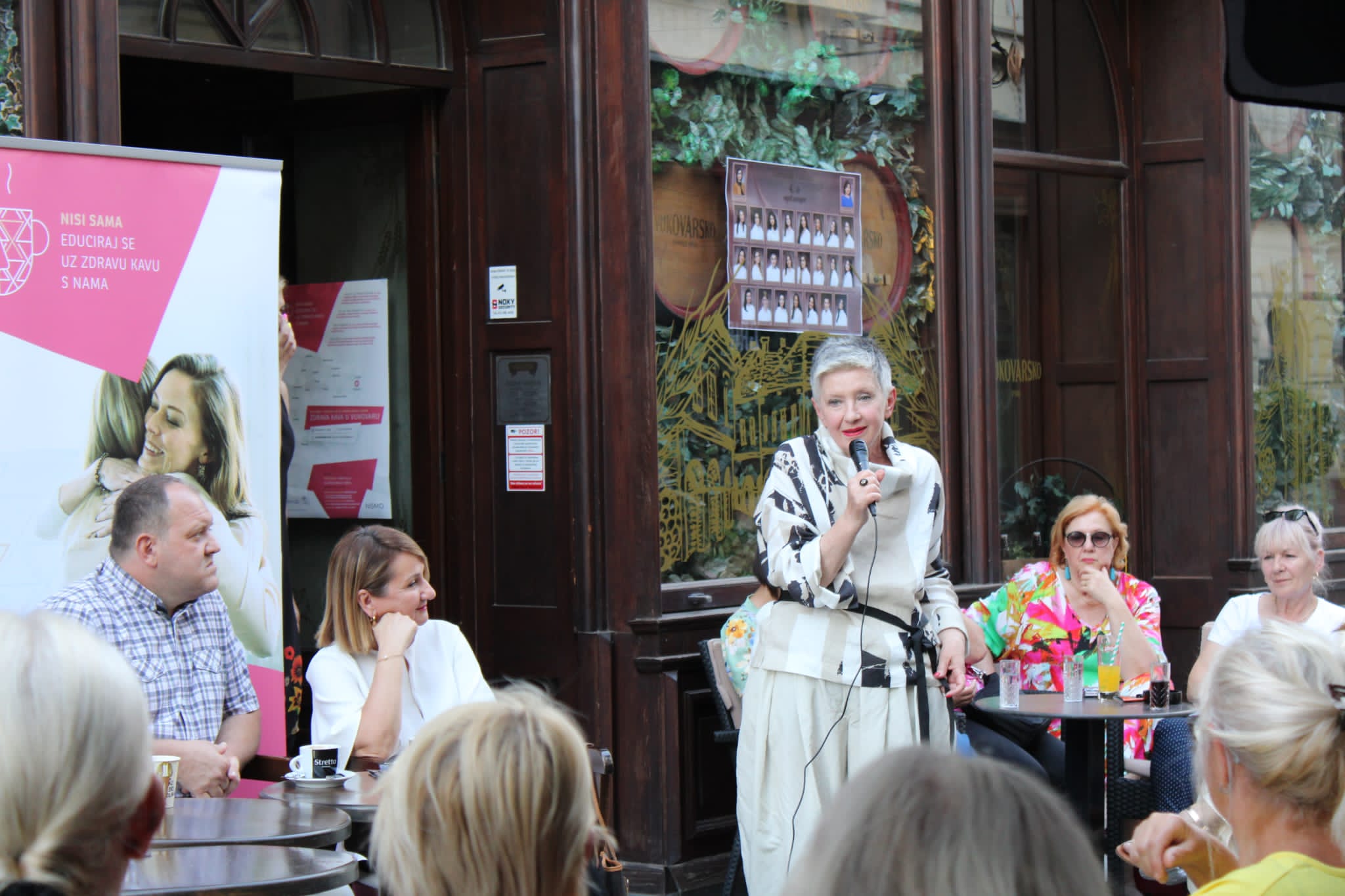 U Vukovaru su s okupljenim ženama, njihovim obiteljima i svim zainteresiranima razgovarali doc. dr. sc. Vesna Ramljak, dr. med., voditeljica Odjela za onkološku patologiju i kliničku citologiju Klinike za tumore Kliničkog bolničkog centra Sestre milosrdnice, mr. sc. Anto Blažanović, dr. med., spec. patologije i sudske medicine, ravnatelj Nacionalne memorijalne bolnice Vukovar, Mario Begović, dr. med., spec. kirurške onkologije i subspec. abdominalne kirurgije u Nacionalnoj memorijalnoj bolnici Vukovar, Sanja Gali, dr. med., epidemiologinja u Zavodu za javno zdravstvo Vukovarsko-srijemske županije, koordinatorica Nacionalnog programa ranog otkrivanja raka dojke za VSŽ i Marko Samardžić Ilić, fizijatar u Nacionalnoj memorijalnoj bolnici Vukovar.